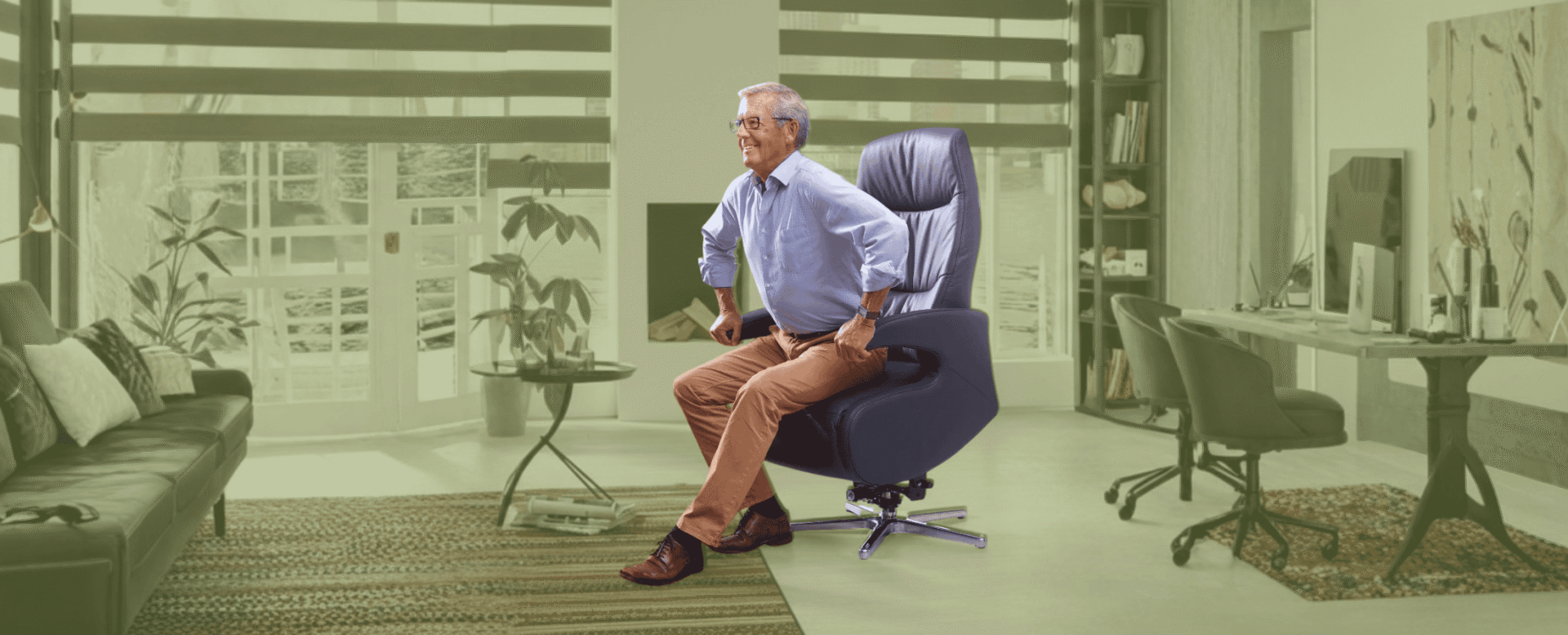 U kunt de materialen voelen, de bediening testen en het verschil ervaren tussen verschillende opties, zitmaten en ondersteuningsniveaus.